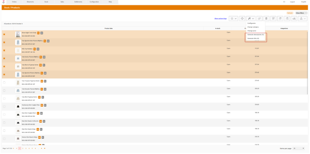 In the stock / products module we’ve introduced a new feature: AI-powered generation of product names, descriptions and offer titles – ready to use across all sales channels connected to PowerHub.