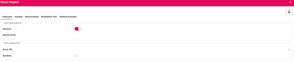 - Synchronizację zamówień (częstotliwość i okres pobierania).