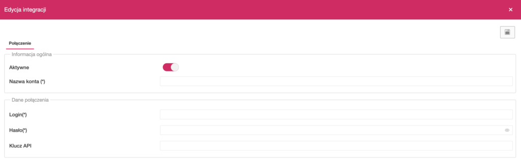 - Podaj uzyskany login i hasło klienta. Pole klucz API nie jest obowiązkowe.