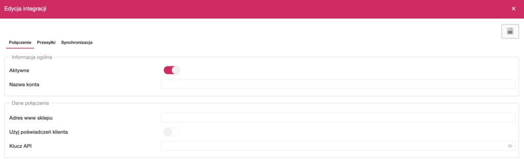 - Aktywne – włącz integrację
